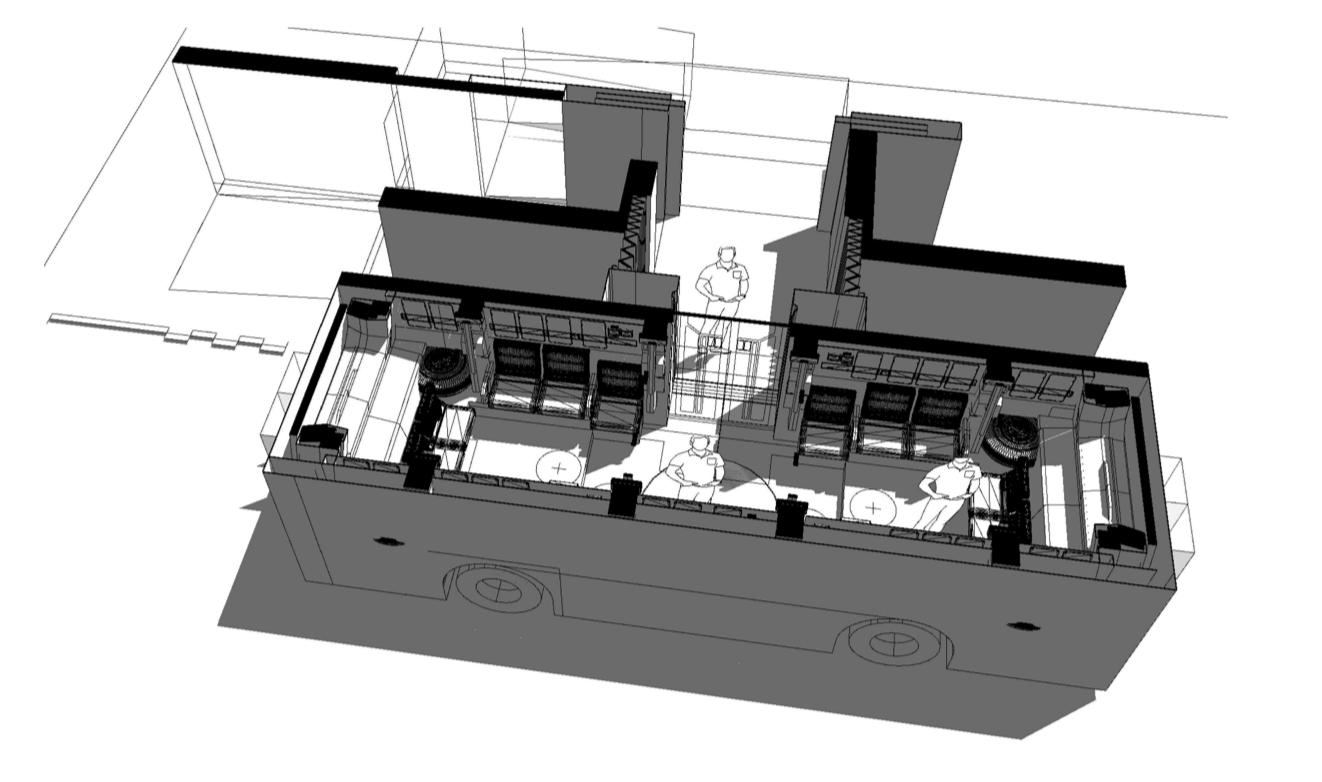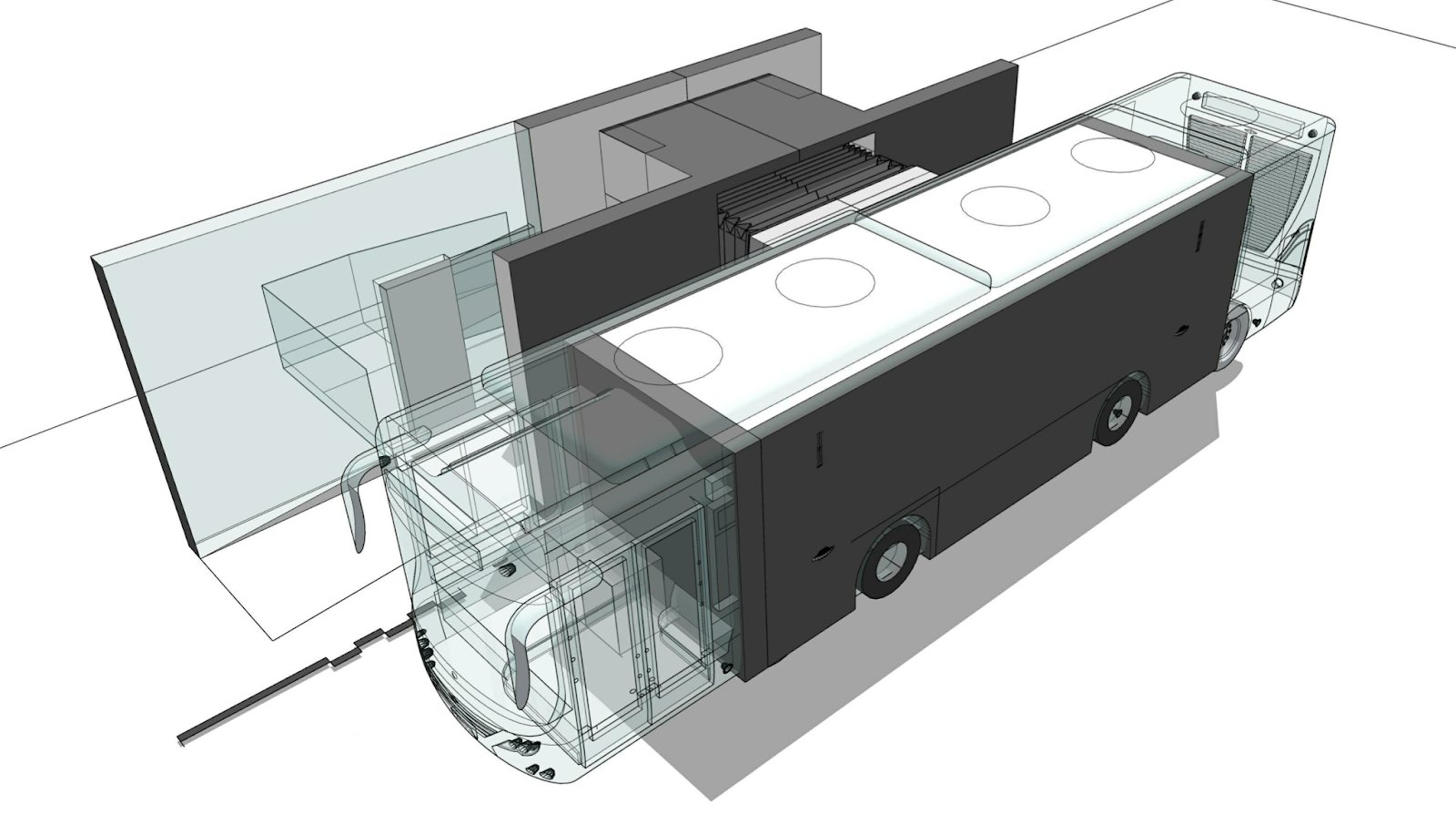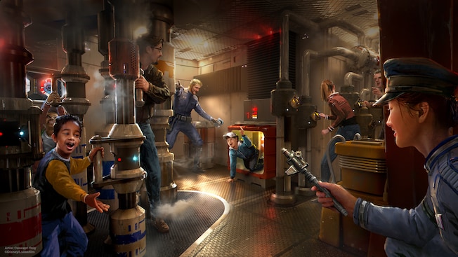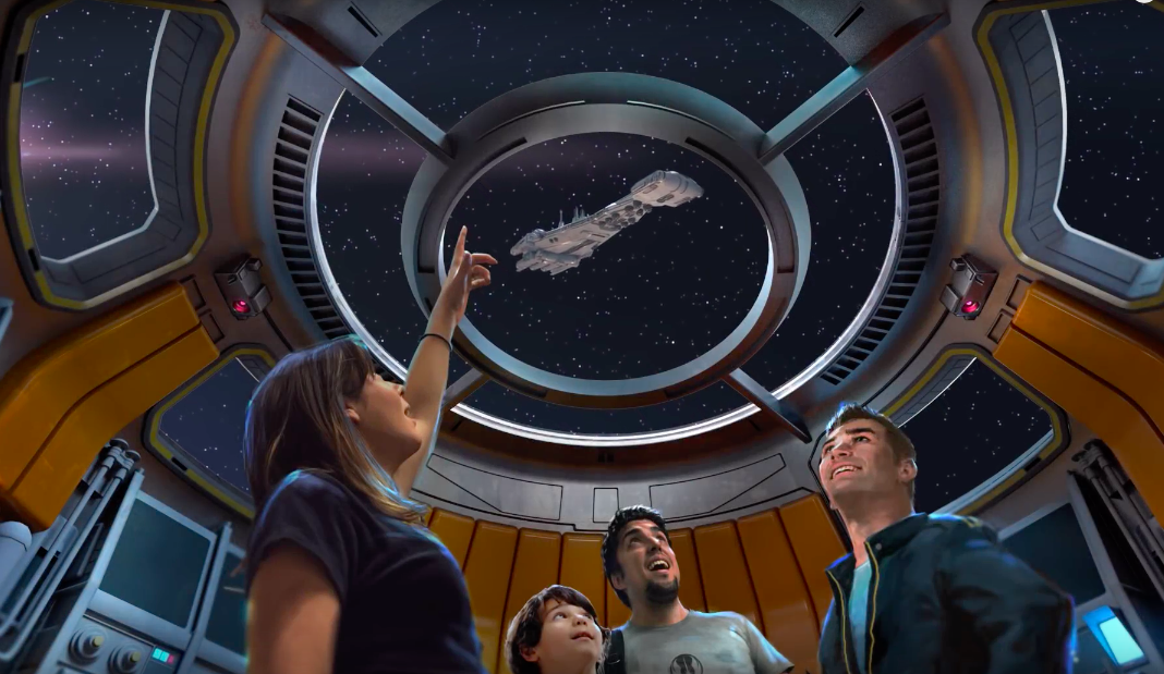 Para las excursiones a Battu los huéspedes abordarán otras cápsulas de lanzamiento que los llevarán directamente al parque, y para ésto los Imagineers han ideado unos autobuses modificados para que el interior del mismo sea una nave espacial con ventanales que den al espacio, como pueden ver a continuación.