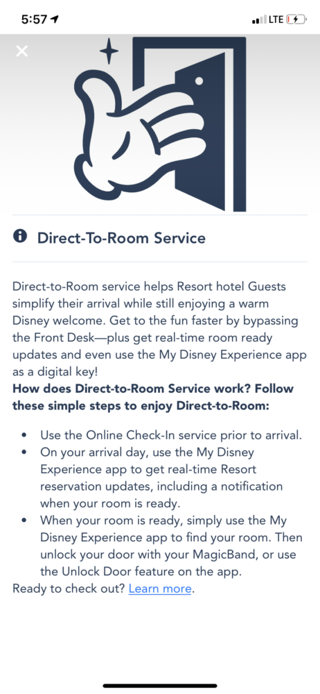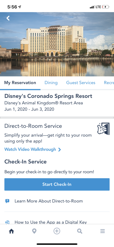 Con el eventual cese de la cuarentena y posterior re-apertura de los Parques Disney, queda la duda de cómo será el funcionamiento de las tracciones, shows, desfiles y todas las actividades que se pueden realizar en los Disney Resort. Pues hace unos días un usuario en twitter publicó que su aplicación de My Disney Experience le notificó que en el viaje que tiene pautado para el 12 de Julio de 2020, debe realizar el Check-in del Hotel por la App y al momento de llegar deberá dirigirse directamente a su habitación, para así evitar que haga el Check-in de forma presencial en el Lobby del Hotel.