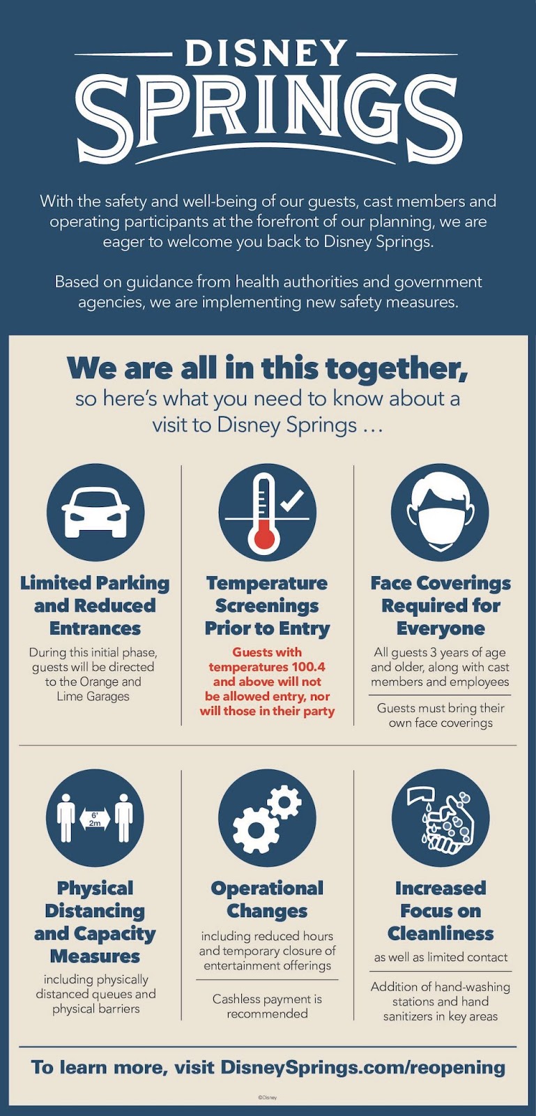 Con el anuncio hace varios días de que el próximo 20 de Mayo Disney Springs reabrirá, ahora se suma la noticia de que el 27 de Mayo también reabrirán , World of Disney, D-Luxe Burger (sólo para despachar ordenes realizadas de manera online) y el Marketplace Co-Op, siendo así los primeros locales propiedad directa de Disney que abrirán ya que el 20 de Mayo solo abrirán tiendas y Restaurantes pertenecientes a otras compañías. Además de ésta noticia Disney ha publicado un vídeo con las normas a seguir para cumplir con el distanciamiento social en ésta primera fase de reapertura.