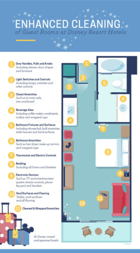 Disney está muy consciente de la necesidad de aumentar las medidas de higiene en las habitaciones por lo cuál ha anunciado que realizará las siguientes acciones: